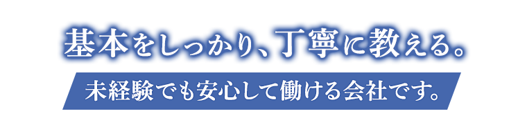 未経験者を歓迎 ほぼ全員が未経験からスタート。先輩が3〜4人のチームで丁寧に指導します。